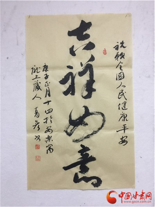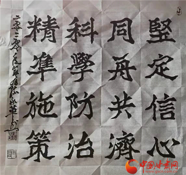 中國甘肅網(wǎng)2月12日訊(本網(wǎng)記者 張?zhí)m琴 張玉芳)2020年新春,面對突如其來的新冠肺炎疫情,全國人民正在以必勝的信心全力打贏這場沒有硝煙的戰(zhàn)爭。翰墨傳情,為抗疫助力。2月11日,由甘肅省文聯(lián)主辦,甘肅省文聯(lián)所屬文藝家協(xié)會、中國甘肅網(wǎng)承辦的甘肅文藝界戰(zhàn)“疫”主題作品展播活動正式啟動。我省12位書法大家揮毫潑墨,這些作品為所有奮戰(zhàn)在抗疫一線和防控疫情工作的平凡天使加油鼓勁,祈禱祝福,用文藝凝聚起抗擊疫情的強(qiáng)大精神力量,為我省防控疫情宣傳助力,受到了社會各界的贊譽(yù)。