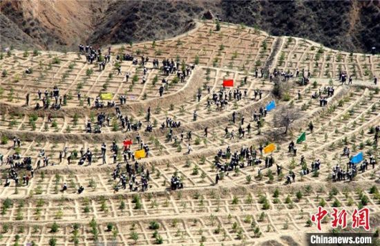 慶陽市西峰城區(qū)職工春季義務(wù)植樹現(xiàn)場(chǎng)。 (資料圖) 徐亞東 攝