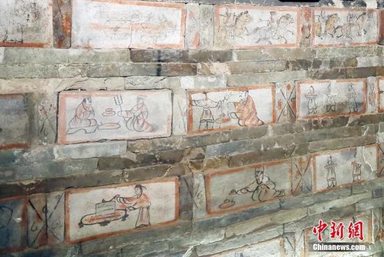畫像磚內(nèi)容為仆人們?cè)诿β档丶庸な澄?。高?nbsp;攝