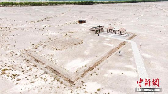 嘉峪關(guān)新城魏晉墓群六號(hào)墓是一座典型的三室墓,由前、中、后三個(gè)墓室組成。圖為7月中旬,六號(hào)墓航拍圖。高展 攝
