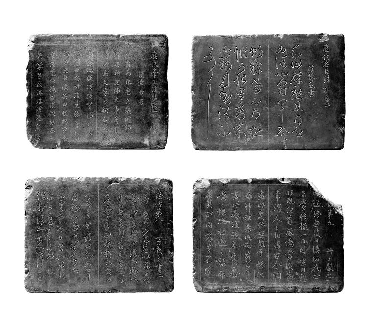 恰好此時金石摹刻家溫如玉、張應(yīng)召師徒重摹上石,肅憲王遂決心公諸天下,傳于后世。溫、張師徒二人受肅憲王之命摹刻“宋本”《淳化閣帖》,選定石質(zhì)密致,具青灰色,擊之有鏗鏘聲的富平“銅磬石”,鐫刻碑帖。