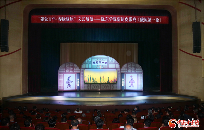中國甘肅網(wǎng)7月16日訊(本網(wǎng)記者 宋芳科 程?。?月16日晚,紅色題材皮影戲《隴原第一槍》登上“建黨百年·春綠隴原”文藝展演的舞臺。臺前皮影靈動講述一段隴原紅色故事,幕后國家非遺道情皮影傳承人和隴東學(xué)院學(xué)生聯(lián)袂登臺,舞皮影、唱道情在師生傳承中演繹經(jīng)典文化。為了讓現(xiàn)場觀眾更好了解道情皮影,劇院在后臺同步直播,將藝術(shù)家表演皮影的過程通過兩側(cè)大屏幕顯示在觀眾面前。同時,中國甘肅網(wǎng)對本次演出全程進(jìn)行網(wǎng)絡(luò)直播,截至演出結(jié)束,點擊量超14.7萬次。