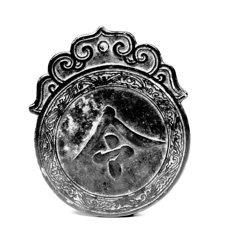 夜巡牌,高14厘米,寬11.5厘米,厚0.5厘米,紅銅制作。大體呈圓形,上面是狀如柿蒂形的鈕,鈕上雕刻有卷云紋,有一孔,用來穿繩。牌的正面為一楷書“令”字,字外三道弦紋,夾一圈卷云紋,背面為“肅字捌佰肆拾伍號”“永昌衛(wèi)指揮使司夜訓(xùn)牌”。