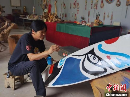 取材、挖空、刨光、勾線、著色……經(jīng)過(guò)這些步驟,一個(gè)馬勺臉譜就完成了。馬勺臉譜由中國(guó)民間社火臉譜演化而來(lái),已有數(shù)千年歷史,系列產(chǎn)品主要包括馬勺臉譜、梭子臉譜、鏟子臉譜、木锨臉譜等。9月初,甘肅省隴南市徽縣馬勺臉譜的省級(jí)傳承人馬龍,依舊在工作室創(chuàng)作。今年47歲的他,堅(jiān)守馬勺臉譜的制作技藝已有20余載,不僅傳承了社火臉譜和京劇臉譜的古韻,而且創(chuàng)新了貼金、刻繪等技藝,在傳統(tǒng)中融入了現(xiàn)代造型和色彩元素。它的作品在網(wǎng)絡(luò)引起熱議:“臉譜畫(huà)在梭子上,厲害了。”“寶藏非遺,期待下次打卡。”