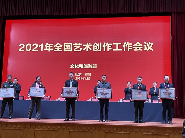中國(guó)甘肅網(wǎng)12月19日訊 12月18日,文化和旅游部在山東省青島市召開的“2021年全國(guó)藝術(shù)創(chuàng)作工作會(huì)議”上,發(fā)布了“慶祝中國(guó)共產(chǎn)黨成立100周年舞臺(tái)藝術(shù)精品創(chuàng)作工程”入選名單,頒發(fā)了“慶祝中國(guó)共產(chǎn)黨成立100周年舞臺(tái)藝術(shù)精品創(chuàng)作工程獎(jiǎng)牌”。甘肅省文化和旅游廳遴選推薦的舞劇《絲路花雨》《大夢(mèng)敦煌》《彩虹之路》、隴劇《官鵝情歌》、小品《你笑起來(lái)真好看》等5部舞臺(tái)藝術(shù)精品,經(jīng)文旅部評(píng)審正式入選“舞臺(tái)藝術(shù)精品創(chuàng)作工程重點(diǎn)扶持作品”。甘肅省歌舞劇院創(chuàng)排的舞劇《絲路花雨》作為12家“百年百部”工程受獎(jiǎng)單位在全國(guó)藝術(shù)創(chuàng)作工作會(huì)議上接受獎(jiǎng)牌和榮譽(yù)證書,甘肅省文旅廳、山東省文旅廳等參會(huì)代表12家領(lǐng)獎(jiǎng)單位上臺(tái)領(lǐng)獎(jiǎng),充分展現(xiàn)了文旅部對(duì)甘肅省入選作品質(zhì)量及組織工作的高度肯定。