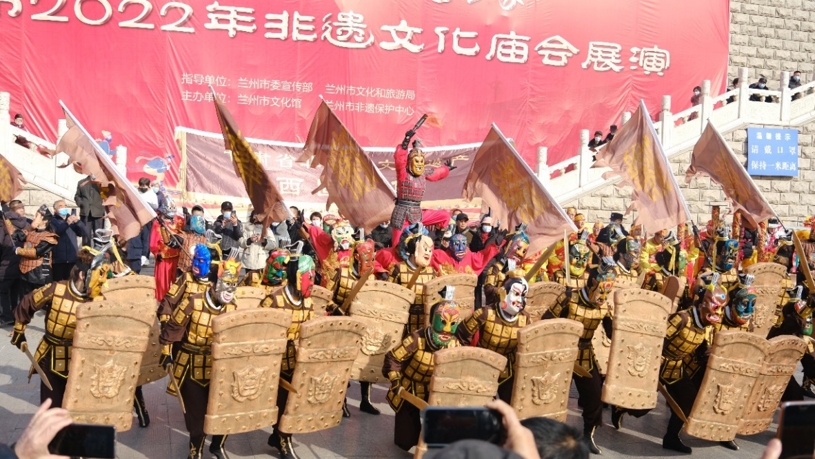 2月2日, 大年初二,“冬奧過大年·文化進(jìn)萬家”蘭州市2022年非遺文化畝會(huì)展演活動(dòng)在甘肅省蘭州市城關(guān)區(qū)金城關(guān)舉行。
