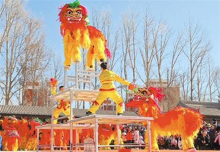 民樂縣高臺舞獅展雄風(fēng)。新甘肅·甘肅日報通訊員 王 將