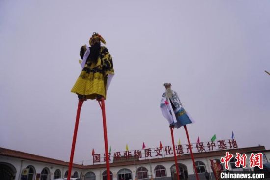 “苦水高高蹺”表演歷史悠久相傳始于元末明初,一般是民間“二月二”的重頭戲之一。“高”和“活”是其兩個(gè)突出特點(diǎn),高高蹺曉腿約3.3米,加上表演者的身高,可達(dá)4.7米至5米,令人望而生畏、嘆為觀止。