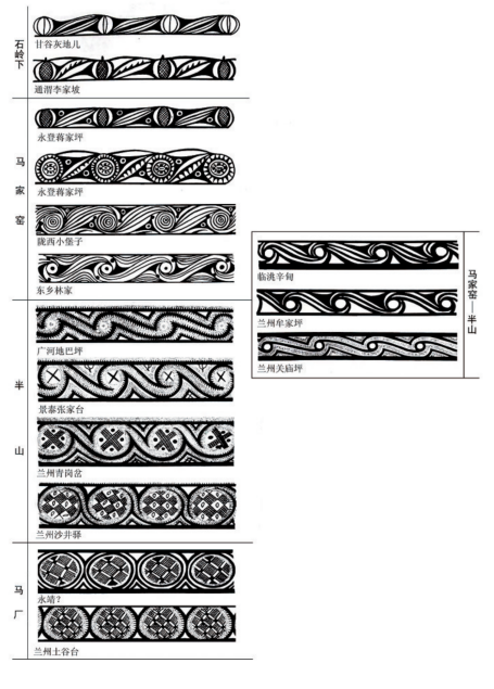在20世紀(jì)五六十年代,在甘肅及鄰近的青海東部地區(qū)新發(fā)現(xiàn)大量的馬家窯文化遺址,同時也進(jìn)行了一些發(fā)掘工作,為探索馬家窯文化及彩陶的來源進(jìn)行了深入研究。關(guān)于馬家窯文化與仰韶文化的關(guān)系,體現(xiàn)在彩陶上的線索非常明確,石興邦先生就此進(jìn)行了探討,他在1962年發(fā)表的一文中認(rèn)為馬家窯文化彩陶受到廟底溝類型彩陶的影響,紋飾母題與演變規(guī)律都有相似之處。嚴(yán)文明先生1978年發(fā)表的《甘肅彩陶的源流》,論及半坡類型向隴東和廟底溝類型向隴西及青海東部的擴(kuò)展,認(rèn)為馬家窯文化彩陶的源起與中原地區(qū)的仰韶文化有關(guān)。