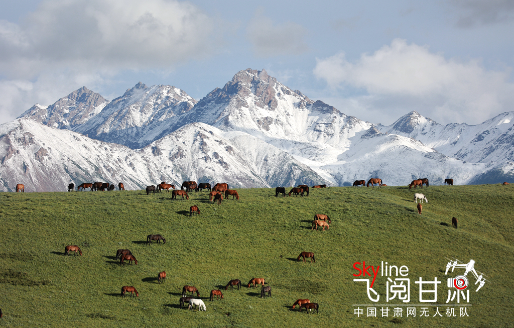 7月21日,甘肅山丹馬場(chǎng)迎來降雨天氣,雨后草原氣溫回升,雪山、草場(chǎng)和馬群構(gòu)成一幅幅美麗的生態(tài)畫卷。