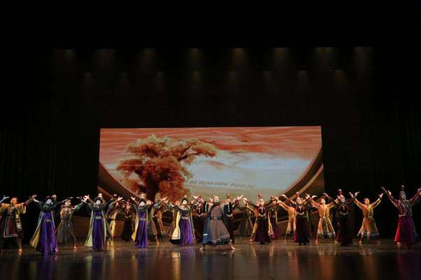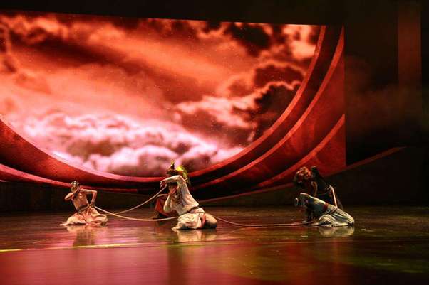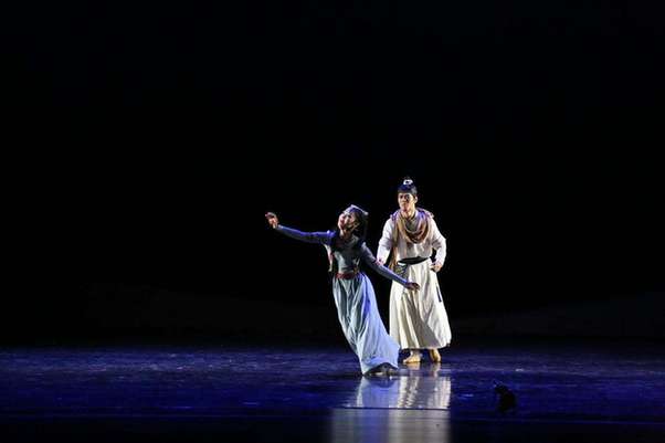 7月31日晚,國(guó)家藝術(shù)基金資助項(xiàng)目大型民族舞劇《駝道》在敦煌大劇院首演。