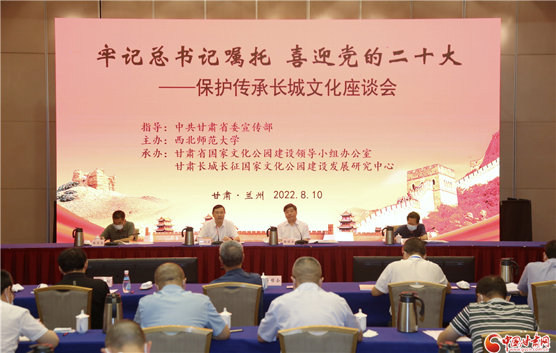 中國甘肅網(wǎng)8月10日訊(本網(wǎng)記者 程健 宋芳科)8月10日下午,由中共甘肅省委宣傳部指導(dǎo),西北師范大學(xué)主辦,省國家文化公園建設(shè)領(lǐng)導(dǎo)小組辦公室、甘肅長城長征國家文化公園建設(shè)發(fā)展研究中心承辦的“牢記總書記囑托 喜迎黨的二十大——保護(hù)傳承長城文化座談會”在蘭召開。省委宣傳部副部長李潤強(qiáng)出席并講話。西北師范大學(xué)黨委書記、甘肅長城長征國家文化公園建設(shè)發(fā)展研究中心主任張俊宗主持座談會并致辭。
