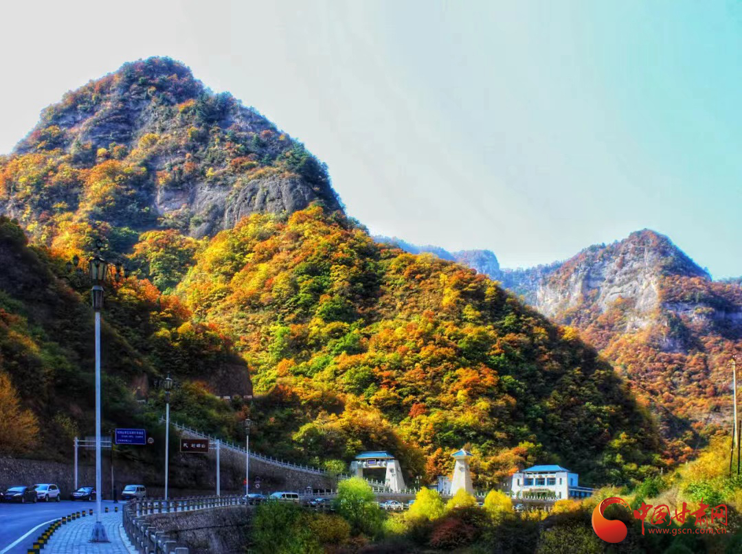 綠色、紅色,橘色……9月27日,秋日的崆峒山層林盡染、五彩斑斕,不同的色彩組合在一起,如同油畫(huà)般,美不勝收。
