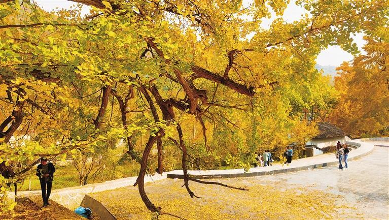 金秋時(shí)節(jié),隴南徽縣各地的銀杏樹葉逐漸變黃,落地的銀杏葉宛如一塊“金黃地毯”,勾勒出一幅幅圖畫般的迷人勝景,吸引眾多游客前來拍照打卡。
