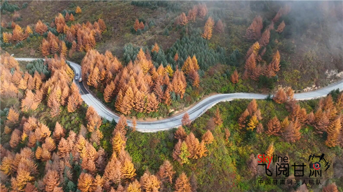“一年好景君須記,最是橙黃橘綠時。”在初冬遇見深秋。隴南文縣的高樓山依然色彩斑斕,驅(qū)車沿著蜿蜒山路前行,目之所及皆是秋日童話世界。從空中俯瞰,公路更是在斑斕的林海中延伸,在薄霧籠罩中遇見遠方。