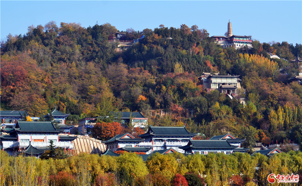 11月7日,冬陽下的蘭州白塔山靜美而絢爛。地處黃河蘭州段北岸的白塔山山巒上,色彩斑斕的植被與古樸典雅的建筑物相互映襯,構成了美不勝收的深秋畫卷。