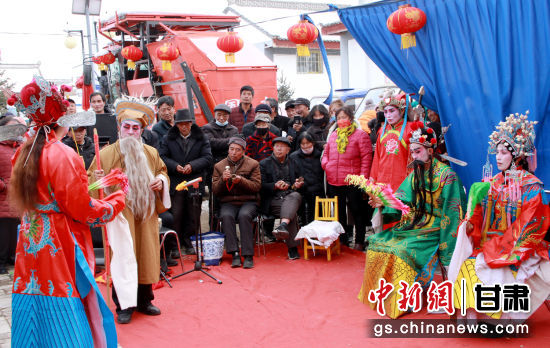 中新網甘肅新聞2月8日電 (朱玲)農歷正月,走進華亭市西華鎮(zhèn)西塬村,山村隱掩處,遠遠聽聞古樸蒼勁的戲曲腔調傳來。村部院落里,村民或站或蹲,里三層外三層地將表演者圍了個水泄不通。