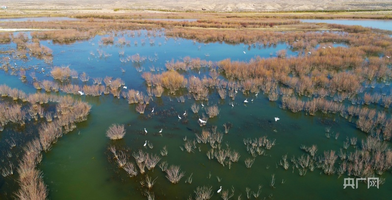 陽春三月,位于甘肅省武威市民勤縣、地處石羊河下游的亞洲最大沙漠水庫——紅崖山水庫,迎來大批白琵鷺、灰鶴、鳳頭鸊鷉、蒼鷺、大雁等候鳥游弋覓食、追逐嬉戲、展翅翱翔。
