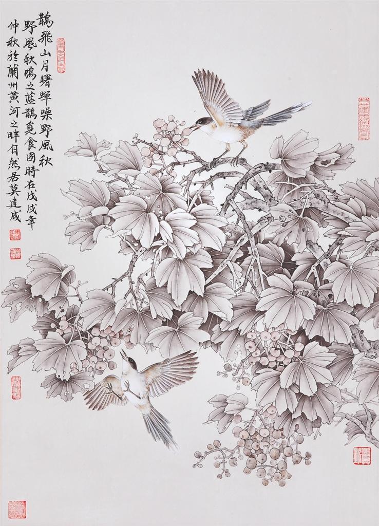 莫建成、莫曉松的花鳥畫藝術(shù)是在隴原大地的文脈浸染和敦煌藝術(shù)的熏陶滋養(yǎng)下,上下求索、靈苗自探的結(jié)晶,以其獨特的畫風(fēng),成為西北畫壇上一道亮麗的景觀。此次展覽展出兩位藝術(shù)家傾情創(chuàng)作的100多幅精品力作,將傳統(tǒng)積淀與時代審美相連接,實現(xiàn)了自然景觀與人文意象有機融合,展現(xiàn)了對西北大地的情愫、對優(yōu)秀傳統(tǒng)文化的重尋,體現(xiàn)出藝術(shù)家致力于中國“工筆花鳥畫傳承與發(fā)展”的深度思考與實踐。本版特選登其中部分作品,以饗讀者。——編者