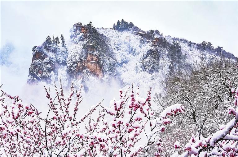 平涼市崆峒山景區(qū)桃花春雪的景致,別有一番韻味。 新甘肅·甘肅日報通訊員 徐振華