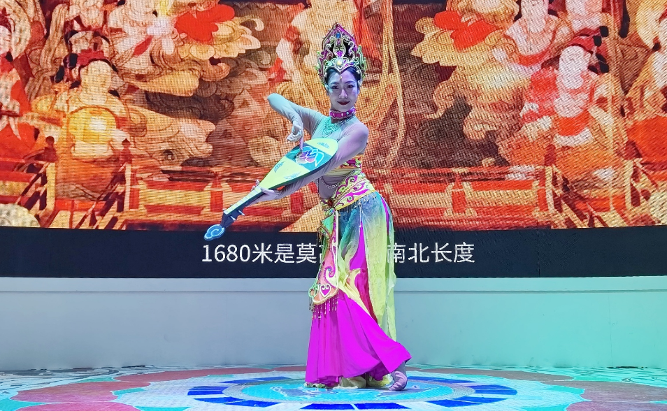 展覽現(xiàn)場,甘肅歌劇院的6名專業(yè)演員在甘肅展館和整個展館內(nèi)開展游園式巡演活動。演員們帶來的《年年有魚》《反彈琵琶》等精品舞蹈曼妙傳神,以一種更加“親民”的藝術(shù)形式吸引廣大中外客商和觀眾聚集甘肅展區(qū)領(lǐng)略甘肅風(fēng)采。