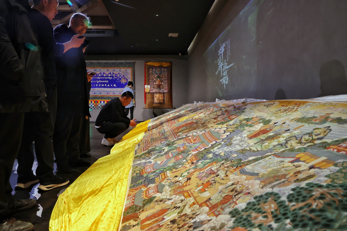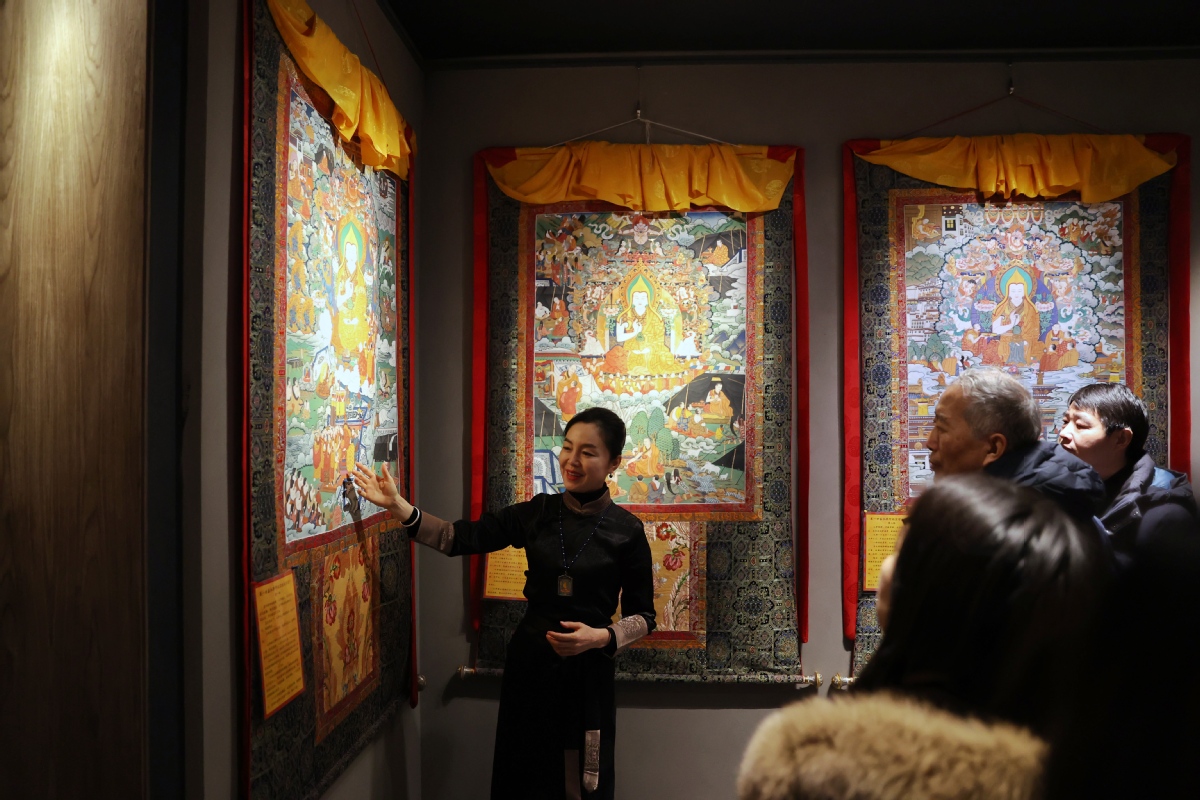 (記者 姜東)2023年12月26日,北京,觀眾在皇城藝術(shù)館參觀《甘肅甘南非遺文化藝術(shù)展》。近日,《甘肅甘南非遺文化藝術(shù)展》在北京皇城藝術(shù)館開(kāi)展。此次展覽主要展示了甘南藏族自治州非物質(zhì)文化遺產(chǎn)藝術(shù)作品《拉卜楞文化歷史彩繪藝術(shù)大觀》《藏族書(shū)法瑰寶》及甘南拉卜楞文創(chuàng)產(chǎn)品。