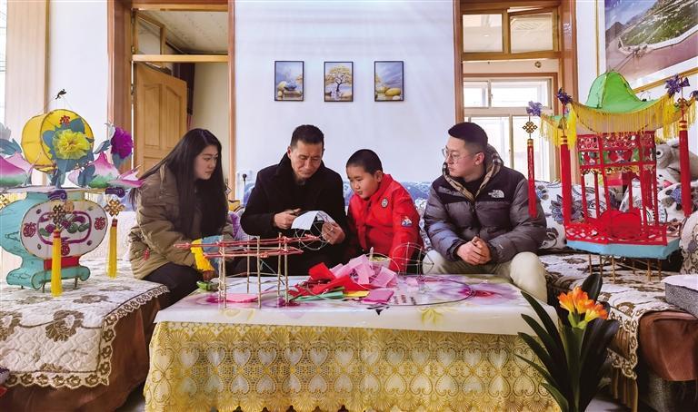 正月初十,記者走進(jìn)魏世發(fā)家中,院中一盞盞精美的花燈擺放有序,色彩鮮艷、栩栩如生,呈現(xiàn)出皋蘭傳統(tǒng)手工花燈技藝的魅力。朱榮亮是石洞小學(xué)二年級(jí)學(xué)生,一次偶然的機(jī)會(huì)接觸到什川花燈,便產(chǎn)生了濃厚的興趣。他說(shuō):“以前見(jiàn)到花燈我就非常喜歡,今天媽媽專程帶我來(lái)到魏爺爺家學(xué)做花燈,非常有趣。以后有機(jī)會(huì),我會(huì)帶著對(duì)花燈感興趣的同學(xué)來(lái)魏爺爺家跟他學(xué)做花燈。”