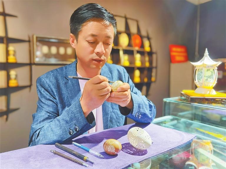 楊星國(guó)在制作蛋雕作品