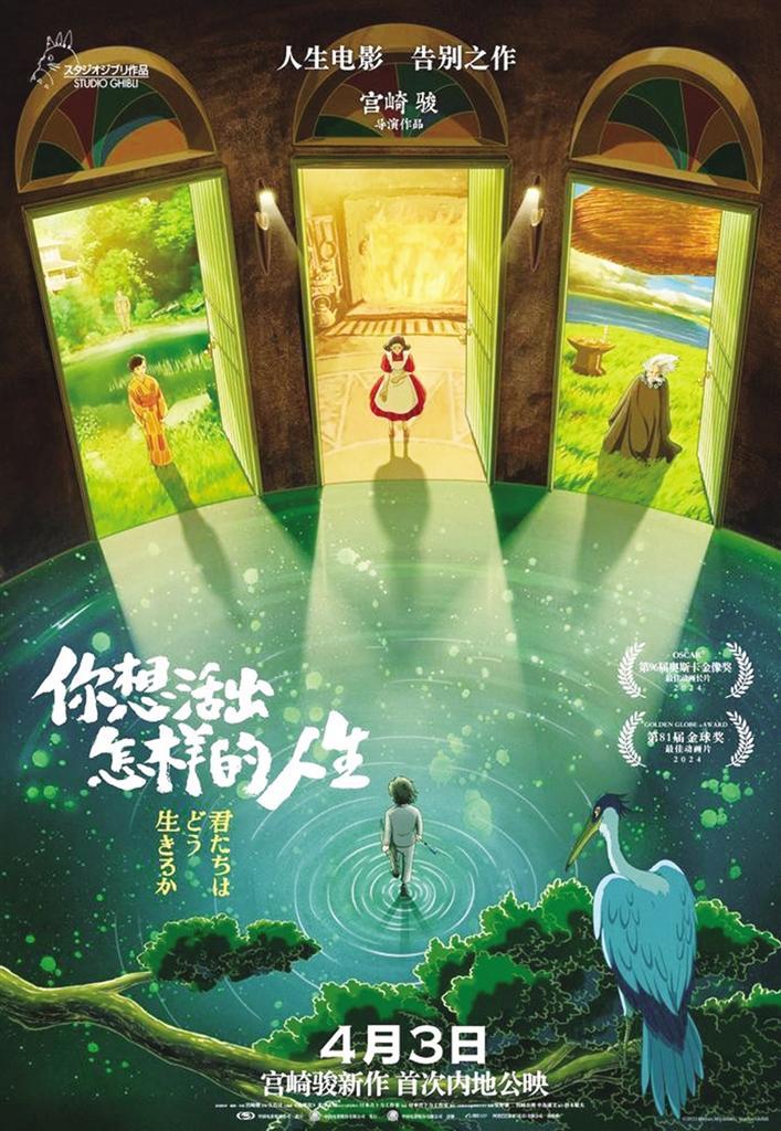 3月14日,剛剛獲得奧斯卡最佳動(dòng)畫(huà)長(zhǎng)片的宮崎駿新片《你想活出怎樣的人生》宣布定檔4月3日,同時(shí)發(fā)布了由吉卜力動(dòng)畫(huà)工作室為中國(guó)觀眾特別制作的手繪版中文海報(bào)。