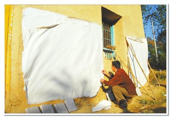 在李生武家的外墻上,我們看到一張張刷在墻上的構(gòu)樹皮紙,用手輕輕地?fù)崦鼈儯杏X附著了勞作的纖維顯得那么綿軟親切。