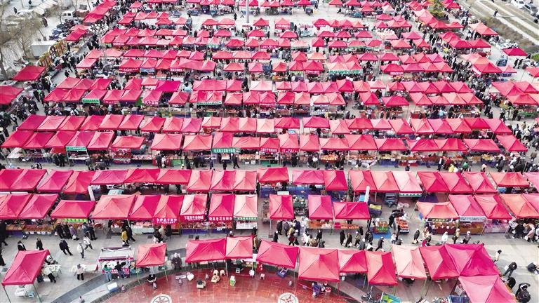 春夏之際,臨夏市紅園廣場500頂“小紅傘”整齊排布,醒目壯觀。傘下的美食琳瑯滿目,香味四溢。不僅有傳統(tǒng)的發(fā)子面腸、牛雜割、釀皮、河州粘糕等,還有很多新晉美味:爆漿酸奶大麻花、可樂雞翅、糯米糕、甜甜圈、壽司等,更有現(xiàn)包現(xiàn)賣的餃子、各類生鮮蔬果、時令鮮切花……在這里,只有你想不到,沒有你買不到!