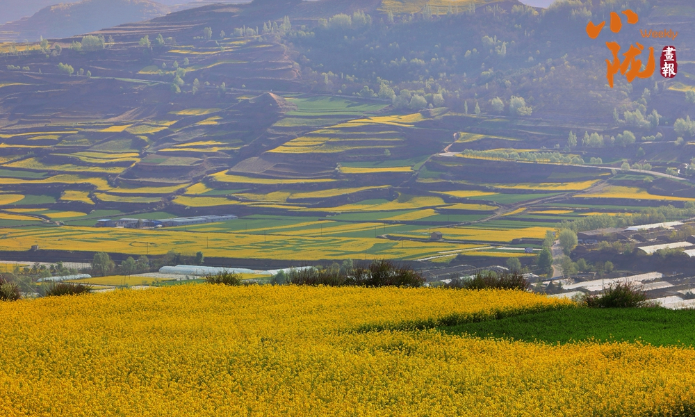 四月的武山,渭河兩岸、高山川道萬畝油菜花競相綻放,滿目金黃,美不勝收。
