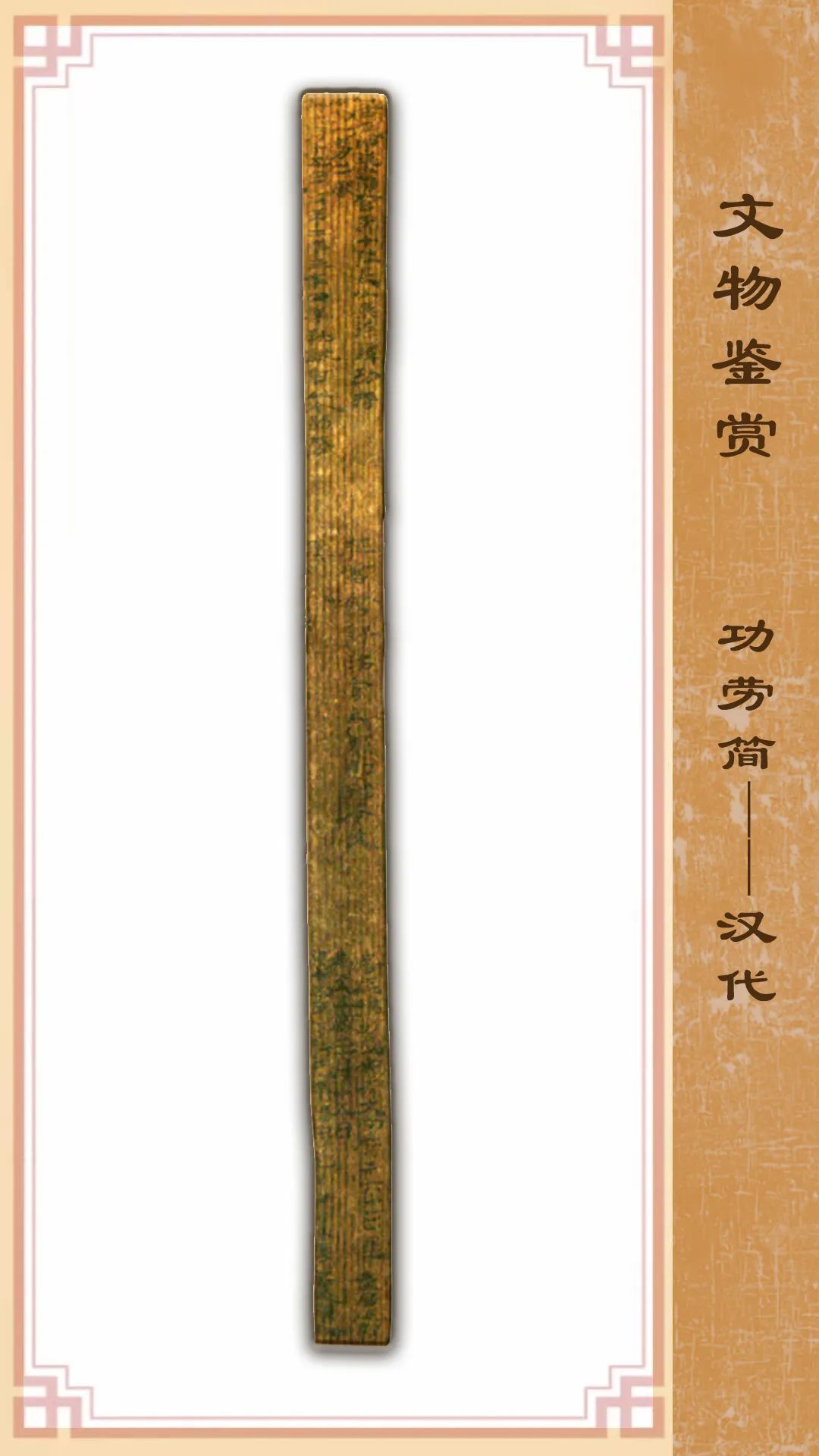 此簡1972年出土于破城子甲渠候官遺址,分三段書寫。內(nèi)容為居延甲渠候官第十燧長徐譚的功將文書。“功將”即“功勞墨將”,功勞墨將文書指官吏個(gè)人才能與勞績的登記名單,是官方對(duì)官吏功勞下發(fā)的認(rèn)定通知。
