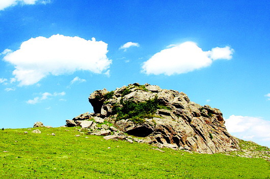 秦人遠(yuǎn)去了,只留下那些讓后人至今懷想不已的地名,諸如石鼓山、景墩梁、牧馬梁、上店子、下店子、大卜峪、瓦泉峪等,而尤以石鼓山最為著名,著名得連那部白發(fā)三千丈的《水經(jīng)注》里,都記載著它的故事:“山在梧中聚,有石鼓不擊自鳴,鳴則兵起。漢成帝鴻嘉三年,天水冀南山有大石自鳴,聲隱隱如雷,有頃止,聞?dòng)谄较宥偎氖?,野雞皆鳴。石長(zhǎng)丈三尺,廣厚略等,在崖勒,去地百余丈,民俗名曰石鼓。”石鼓山是朱圉山最高峰,海拔2625米,山峰陡峭,人跡罕至,遠(yuǎn)望如石鼓,近看似臥牛,茂林幽泉,森秀無(wú)比。初春時(shí)節(jié),萬(wàn)物透綠而石鼓白雪皚皚;大雨前夕,飛鳥翱翔而山上煙云彌漫。更為神奇的是,山丘之巔,突兀一石,酷似一頭臥北朝南的耕牛,翹首做犀牛望月之狀,人稱臥牛山。臥牛山石頸之下,有一巨石,其面圓而平,每當(dāng)正午陽(yáng)光直射之時(shí),遠(yuǎn)遠(yuǎn)望去,石面宛如獸皮所蒙,恰如一面威風(fēng)凜凜的巨型戰(zhàn)鼓,恍惚之中,有如雷聲隱隱而來(lái),民呼之曰石鼓,石鼓山因此得名。石鼓山素來(lái)以厚重的人文歷史和優(yōu)美的草原風(fēng)光而著稱,尤為聞名的“石鼓擎雪”,自古就是“甘谷八景”之一。千百年來(lái),石鼓山甘愿舍棄繁華,遠(yuǎn)離人世,在淡泊寧?kù)o的歲月中,固執(zhí)而堅(jiān)定地守望古坡,守望古坡人家。