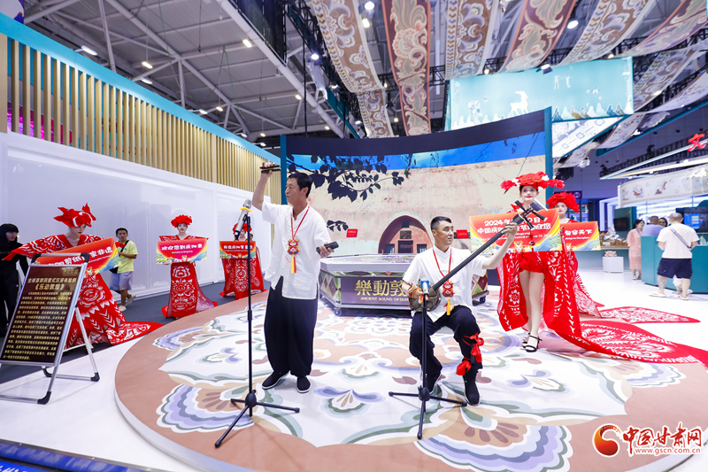 作為“一見慶陽”主題文化日活動的一部分,慶陽剪紙秀+南梁說唱同臺展示,大氣、時尚,盡顯魅力的設計和展示,淳厚、粗獷,極具特色的吹奏和演唱,現(xiàn)場參觀者或駐足觀賞、或拍照,整個場館淹沒在濃濃的慶陽民俗風味里。