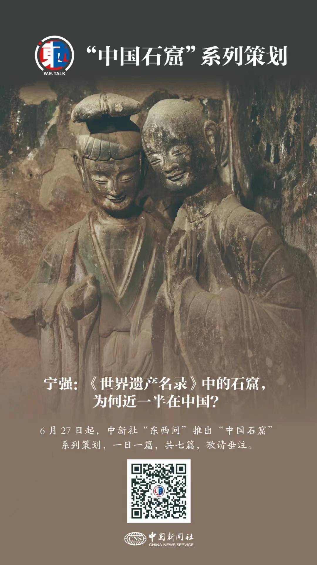 石窟,凝結(jié)人類(lèi)智慧,匯聚多元文化,記錄文明交流。作為石窟遺產(chǎn)大國(guó),中國(guó)石窟璀璨如繁星,散落中華大地,串聯(lián)中華文明發(fā)展足跡,勾勒中外文化交流圖景。中新社“東西問(wèn)”自6月27日起特推出“中國(guó)石窟”系列策劃,帶讀者穿越古今,一眼千年,領(lǐng)略中國(guó)石窟之美,洞見(jiàn)文明互鑒之光。