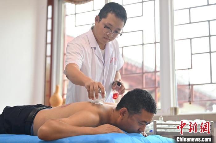 7月16日,甘肅省平?jīng)鍪徐`臺縣皇甫謐針灸康養(yǎng)館內(nèi),工作人員對患者進行拔火罐。2006年,靈臺皇甫謐針灸術(shù)入選第一批甘肅省非物質(zhì)文化遺產(chǎn)名錄。靈臺作為皇甫謐故里,當(dāng)?shù)孛癖姺浅UJ(rèn)可中醫(yī)康養(yǎng),針灸、拔火罐、推拿、葫蘆灸、火龍灸(督脈灸)等中醫(yī)特色療法受到了很多人的青睞,當(dāng)?shù)毓俜揭餐ㄟ^舉辦大型節(jié)會等助推中醫(yī)康養(yǎng)產(chǎn)業(yè)發(fā)展。 皇甫謐是針灸醫(yī)學(xué)鼻祖,其《針灸甲乙經(jīng)》已在多個國家被廣泛傳播應(yīng)用。  中新社記者 李亞龍 攝