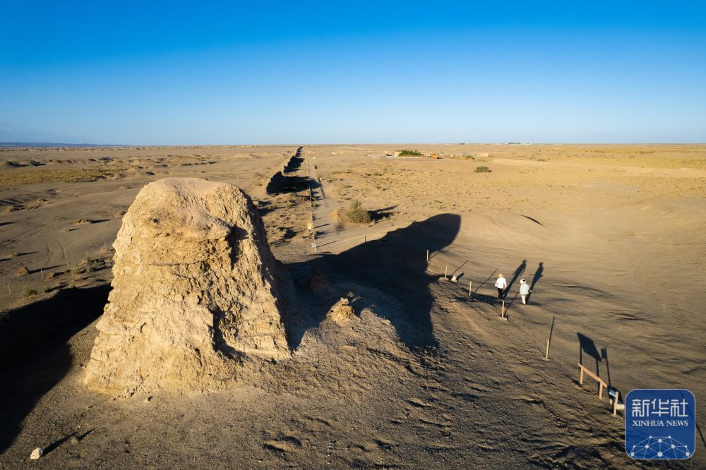 玉門關(guān)外,大漠戈壁,漢長城遺址巍然屹立,訴說著歷史上的邊塞風(fēng)云和絲路滄桑。