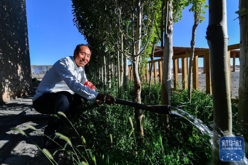 后來,得益于敦煌加強(qiáng)文保力量,他的妻子聞春瑜也成為一名文保員。從此,他們夫妻二人便扎根大漠,像古代戍邊戰(zhàn)士一樣守護(hù)長城。他們在房前屋后種下白楊樹,澆灌出一片菜園,為生活增添點點綠意與希望。