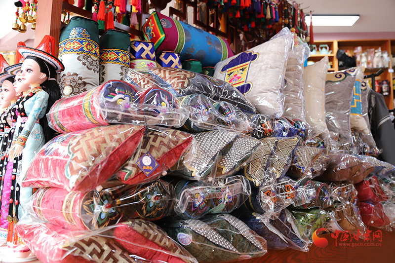 “這個(gè)抱枕上的設(shè)計(jì)非常別致,民族服裝領(lǐng)口和袖口的刺繡也很漂亮,引人注目、創(chuàng)意十足。”幾名挑選民族飾品和工藝品的游客們興高采烈地議論著。