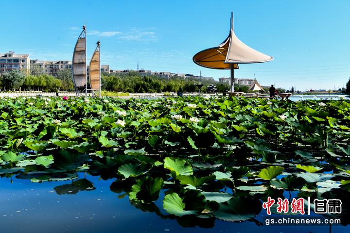 “接天蓮葉無窮碧,映日荷花別樣紅。”盛夏時節(jié),敦煌大漠綠洲持續(xù)高溫,鳴沙山下各種植物茁壯生長,黨河風(fēng)情線上的荷塘里荷花也競相綻放,紅的、白的,一朵朵,一簇簇,在微風(fēng)中搖曳,吸引眾多游人前來休閑避暑,賞荷納涼。王斌銀 攝