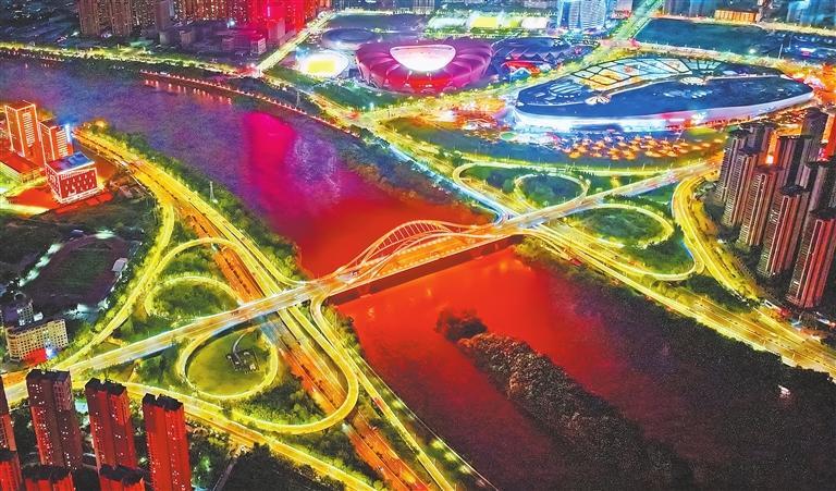 夜晚的深安黃河大橋如同一只美麗的彩蝶。