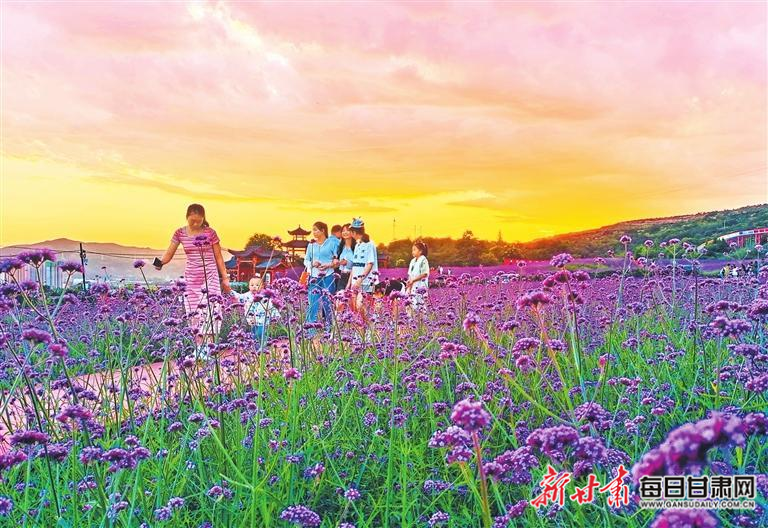 近日,清水縣花舞北山的馬鞭草進(jìn)入盛花期,在晚霞的映襯下,如一幅美麗的畫卷,吸引人們前來賞花游玩。新甘肅·甘肅日?qǐng)?bào)通訊員 雷金鋒