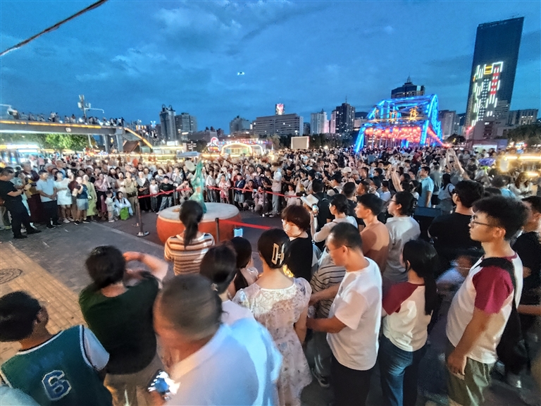 夜游黃河項(xiàng)目則圍繞黃金水道,結(jié)合蘭州南北狹長、“橋梁之都”的特點(diǎn),串聯(lián)黃河母親、中山橋、白塔山,形成“夜游黃河”3條精品航線,開通水上巴士環(huán)線,并依托碼頭創(chuàng)新開展露營、草地婚禮等活動,全方位展示了黃河蘭州段魅力。同時,黃河之濱音樂展演、黃河市集等豐富精彩的活動也已經(jīng)成為“夜游黃河”的常態(tài)化演出和節(jié)目。