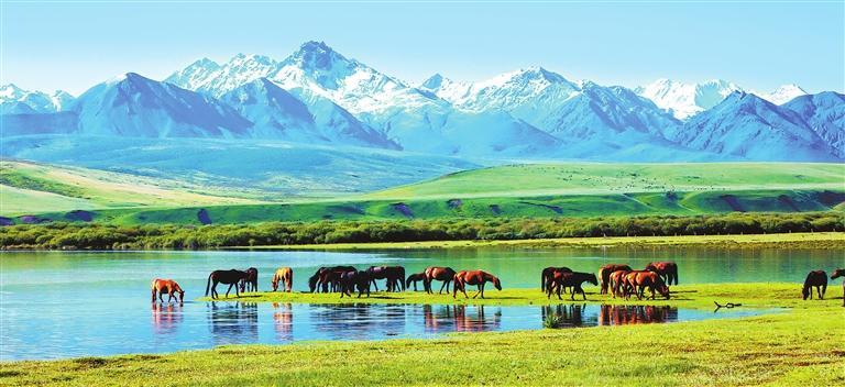盛夏時(shí)節(jié),祁連山北麓的萬畝草場(chǎng)上,水草豐美似玉毯,駿馬颯沓如流星。
