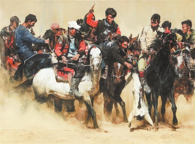 非遺——塔吉克叼羊 (油畫) 張國鋒 (本版文圖由甘肅省美術(shù)家協(xié)會提供)