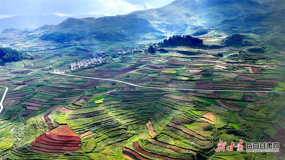 高山花海,紅土梯田,秋日的隴南武都云上馬營(yíng)猶如一頂七彩的花環(huán),圍繞在高山之巔,清新濕潤(rùn)的空氣中,飄著淡淡的花香和藥香,光影交織在松樹(shù)林和村莊之間,一陣風(fēng)吹過(guò),仿佛整片大地都與陽(yáng)光在輕柔地呼吸。