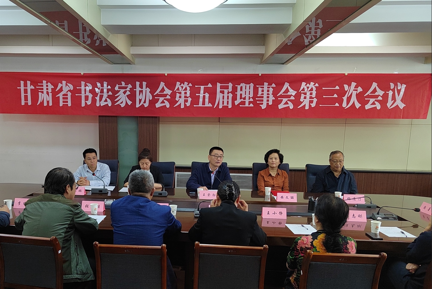 2024年9月13日下午,甘肅省書法家協會第五屆理事會第三次會議在蘭州召開。省文聯黨組書記、主席王登渤出席會議并講話,省文聯人事處處長楊東英、省書協五屆理事會理事參會。會議由省書協常務副主席劉云鵬主持。