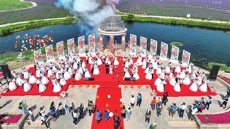 陽(yáng)光、微風(fēng)、花海……夏季的金昌紫金花海充滿浪漫氣息,溫柔而熱烈。6月29日上午,連續(xù)舉辦七屆的“遇見(jiàn)愛(ài),遇見(jiàn)你”薰衣草集體婚禮如約開(kāi)場(chǎng)。近年來(lái),一場(chǎng)場(chǎng)薰衣草之約集體婚禮引領(lǐng)金昌婚慶經(jīng)濟(jì)進(jìn)入一個(gè)快速發(fā)展階段,集體婚禮也成為金昌旅游對(duì)外宣傳推介的一張亮麗名片。