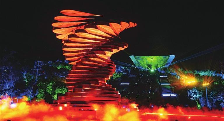 秋日的金川國(guó)家礦山公園樂(lè)聲悠揚(yáng)、光影迷離。夜晚,伴隨著動(dòng)人的旋律,絢爛的光影投射到主界碑“龍首魂”上,金昌元素生動(dòng)地展現(xiàn)在眼前,“鎳都之光”文化展演為旅客帶來(lái)了一場(chǎng)視覺(jué)盛宴。